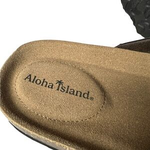 The Aloha Island Women's Slip-on Sandals in brown, size 10W, are perfect for a day at the beach or for casual travel. With a low heel and adjustable buckle closure, these sandals offer comfort and versatility. The bohemian and Hawaiian themes add a touch of flair to your summer, spring, or fall outfit. Made with synthetic upper and lining materials, these sandals feature a flat heel and open toe design, making them ideal for various occasions. Showcasing the Aloha brand, these slip-on sandals are a stylish and practical choice for women looking for a solid brown sandal with a touch of elegance.