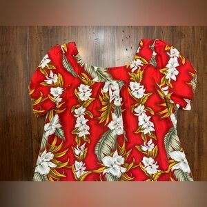 Aloha Mo’i Moi Dress Size Large Red Floral Mumu Roper Vintage Tropical Hawaiian