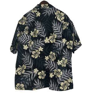 Aloha Republic Hawaiian Shirt Button Up Mens 2XL Black Gray Creme Tropical Beach