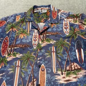 Aloha Republic Surf Navy 100% Cotton Men's Hawaiian Shirt XL ++Please Read++