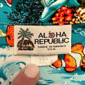Aloha Republic Under The Sea Aqua Cotton Hawaiian Tropical Shirt Men’s Size 2XL
