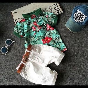 This Cute Set Comes with A Cotton Shirt and Flexible Shorts that Have "rips". Such a cute durable set for your little boy!