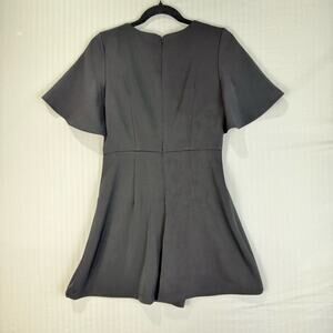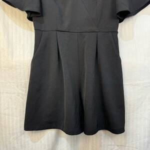 Aloha Studio Black V-Neck Romper Medium Flutter Sleeves Hand Pockets Back Zip