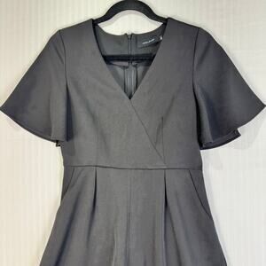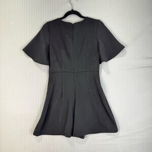 Aloha Studio Black V-Neck Romper Medium Flutter Sleeves Hand Pockets Back Zip