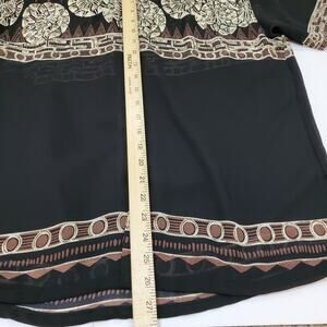 Aloha Womens Blouse Large Abstract Tapa & Flowers on Black Button Down