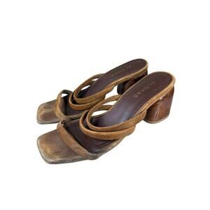 Alohas Brown Suede Block Heel Sandals Slides Size 37 EU / US 6.5