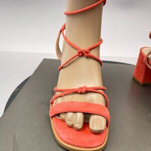 Tags: Coral sandals, suede shoes, block heel, lace-up sandals, strappy heels, summer footwear, women's shoes, trendy sandals, party heels, casual shoes, bright sandals, suede strappy, high heel shoes