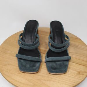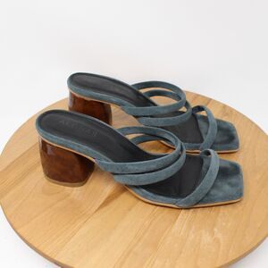 Alohas Heels Womens 38 Indiana Suede Sandals Slip On Block Square Toe Green