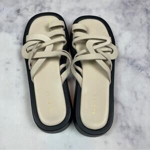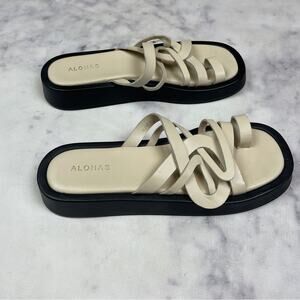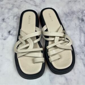Alohas Ivory Toe Ring Strappy Flat Sandals Flip Flops Minimalist Sz 41