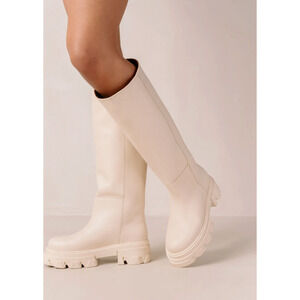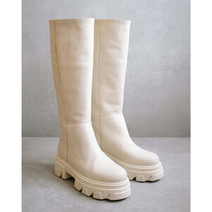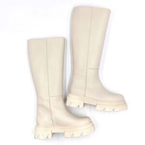 Alohas Katiuska Tall Lug Boots Off White Leather Knee High Chunky Platform Sz 6