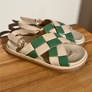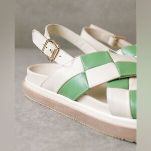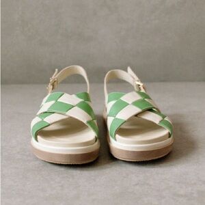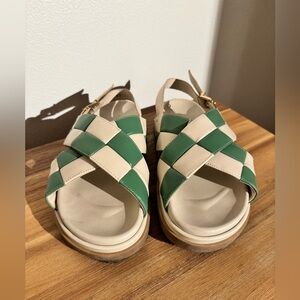 Alohas Marshmallow Scacchi Sandals Platform Leather Checkered Green Size 41 EUC