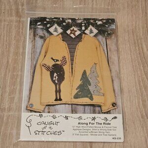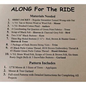 The "Along For The Ride 12" Moose Flannel Tree" sewing pattern features an applique design of a moose and tree, ideal for adding a rustic touch to flannel fabrics. This uncut vintage pattern from the 2000s is designed for unisex use and is made in the United States. Perfect for crafters and sewing enthusiasts looking to create charming applique designs, this pattern offers a versatile option for adding decorative elements to various projects.