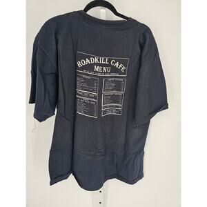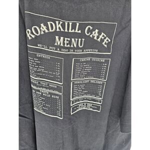 Alore Men's Black Roadkill Cafe Alaska Short Sleeve T-Shirt Size XXL combines casual comfort with playful humor. Featuring a crewneck design, this tee showcases the iconic Roadkill Cafe logo printed on the front and a quirky cafe menu graphic on the back. Made for relaxed, everyday wear, its short sleeves and classic fit make it a fun and versatile addition to any wardrobe.