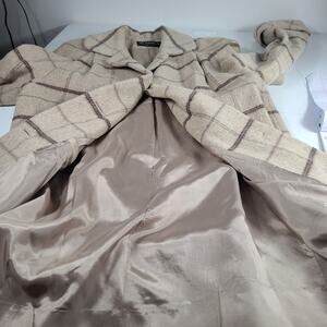 Alorna Tan Gray Brown Plaid Vintage USA Wool Blend Lined Coat Medium