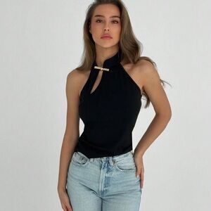 Aloruh Elegant Retro Metal Accessory Versatile Solid Color Halter Neck Tank Top
