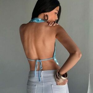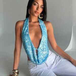 Aloruh Women's Translucent Sequin Plunging Neckline Backless Halter Camisole