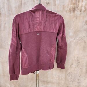 jersey (sweat pant material)with lace panels. mauve color zips in front. logo in back. Preloved condition. All sections of interest as well any known flaws have been documented in the photos and noted as thoroughly as possible. if there are no known flaws, none will be noted. Please feel free to ask any questions before purchase 🙂.