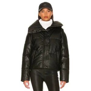Alp N Rock Peak Vegan Leather Puffer Jacket in Black Size Extra Small $368 New without Tags! Never been worn Self 1: 100% polyurethane Self 2 Lining & Fill: 100% poly Made in China Machine wash Front zipper and snap button closure Side slant hand warmer pockets Interior patch pocket Interior drawcord closure Interior storm flap and zipper garage Black silicone arm patch Faux leather fabric 100% cruelty free, eco-friendly, and ethically produced Revolve Style No. ALPN-WO16 Alp N Rock Peak Vegan Leather Puffer Jacket in Black RVL827