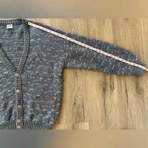 Alpaca 100% Alpaca Wool button up Sweater Made in Peru Gray pattern Pockets Size Large Please see photos for approximate measurements No size tag, please double check measurements before you purchase In good Preloved condition One small area with loose thread as seen in photos. Please let me know if you have any questions. Reasonable offers accepted Bin F