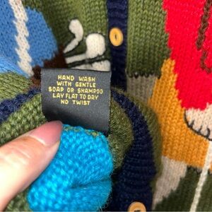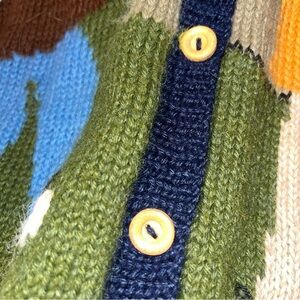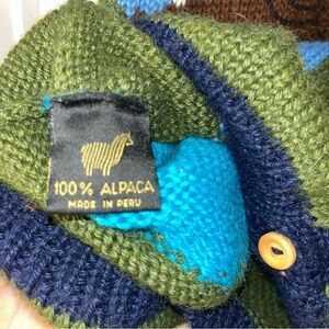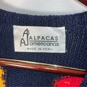 Alpacas Americana Vintage Rare Mens /Women’s Sweater Vest, 100% Alpaca Wool, Made in Peru, one size please look at measurements, wooden buttons, colorful nature designs, golfing theme, animal, ducks, excellent condition great for casual wear, travel, winter and fall, layering, art to wear, very interesting rare piece