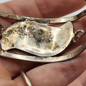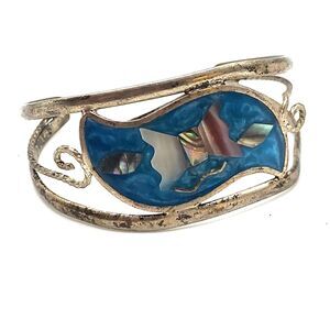 Alpaca Bangle Bracelet Mother of Pearl Inlay Enamel Bangle Bracelet 7in | Materials: sterling silver, mother of pearl | Length: 7in | Clasp:slide on | Signed? Alpaca | Excellent vintage condition