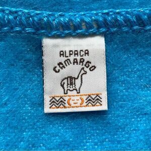 Alpaca Camargo Turquoise Blue Alpaca Blebd Scarf. Excellent used condition. Fringe at ends. Stitched along all edges. Measures approximately 64" in length without fringe and 8.5" in width.