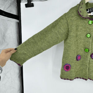 Alpaca Connection Kids Knit Sweater Cost Button Up Girls Size 10 Green Soft