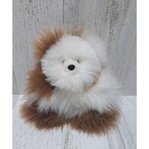 Alpaca Fur Teddy Bear Toy Soft 8” Plush Stuffed Animal Toy Fluffy Brown White