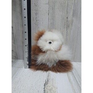 Alpaca Fur Teddy Bear Toy Soft 8 Plush Stuffed Animal Toy Fluffy Brown White
