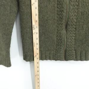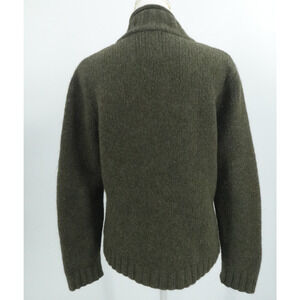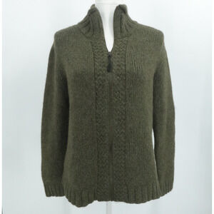 Alpaca Merino Wool Cardigan Womens Medium Green Hand Loomed Full Zip Fisherman