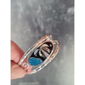 Alpaca Mexico Abalone Shell Beach Scene Cuff Bracelet Vintage