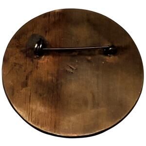 Alpaca Mexico Aztec Round Brass Brooch 2 inches Vintage Black Gold.