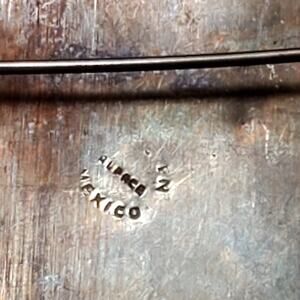 Alpaca Mexico Aztec Round Brass Brooch 2" Vtg Black Gold