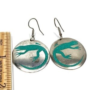 Alpaca Mexico Earrings Dangles Artisan Vintage Lizard Inlaid Turquoise