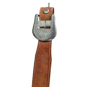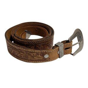 Alpaca Mexico Tooled Leather Belt Silver Buckle Concho Belt Size 36