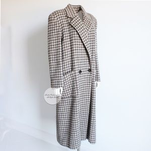 Vintage long wool coat by Alpaca Original SA, likely made in the 90s. Made from an incredibly soft Alpaca wool blend in gray, cream and tan herringbone - very chic! Lined/dry clean only/front pockets. Preowned/vintage with signs of use and prior wear: inner lining hem is loose and needs to be re-sewn. No size tag, fits like modern M/L. Measurements (appx, taken flat and doubled where appropriate): shoulders - 18in, bust - 40in, waist - 38in, hips - 40in, sleeves - 25in, shoulder to hem - 50in