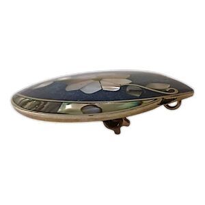 Alpaca Pendant Brooch Pin Abalone Shell Vintage Mexico Inlaid Floral Silver Tone