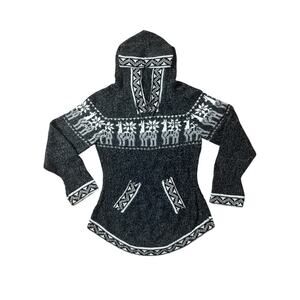 Alpaca Shakira Long Sleeve Pockets Gray Hooded Size Small Artisian Peruvian