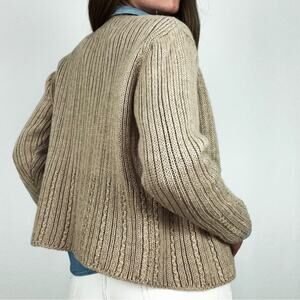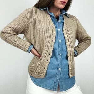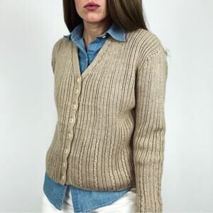 Alpaca Wool & Silk Blend Rib-Knit Button-Front V-Neck Cardigan | Size S