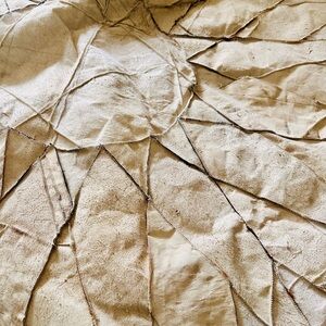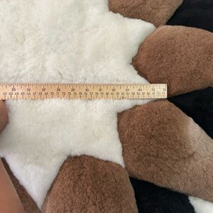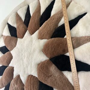 Round rug featuring a starburst pattern in cream, brown, and black.
