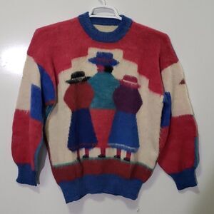 Vintage Bolivian Imports llama & Alpaca wool Bolivian Imports Native designer pullover sweater. Balloon sleeves
