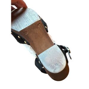 Alpe Woman Black Suede Studded Ankle Strap Block Heel Platforms Women's Size 7.5
