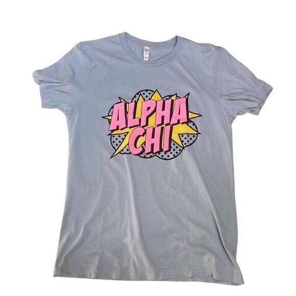 Alpha Chi Sorority T-Shirt Bella + Canvas Comic Graphic Size Medium Light Blue