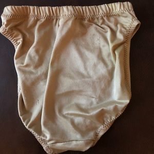 Alpha Factor Nude Brief Undergarment for underneath a gymnastics leotard. Size Child Large