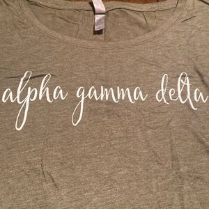 Casual and stylish, this olive green top features the Alpha Gamma Delta design. Perfect for everyday wear.