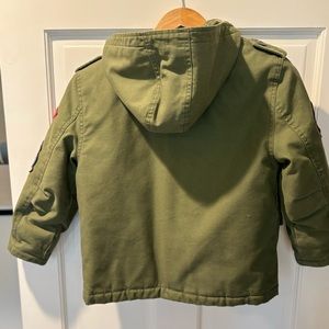 For kids who want to match their military (or military style-loving parents) this is an exact replica. Our Kids MA-1 jacket leads in warmth and durability. This kids flight jacket is based on the MA-1 men's classic, featuring the same authentic Alpha Signature utility/pencil pocket. The Kids MA-1 has four additional pockets—both inside and outside—plus a knit collar, cuffs and waistband for warmth. Genuine patches and sage green color.