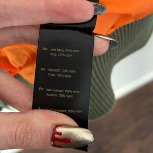**there are some light discoloration on cuffs and neck , some small faint stains on elbows and a small scratch on the back, see all photos**