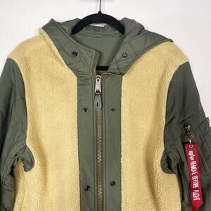 Alpha Industries Mens M Olive Green M-47 Pile Liner Long Jacket Reversible Hood