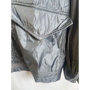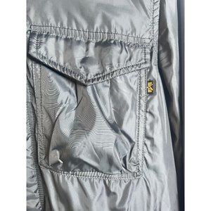 Alpha Industries Military Cage Gray Hooded Full Zip Flight Jacket. Windbreaker Jacket. Full zip and snap closure. Two front flap pockets.