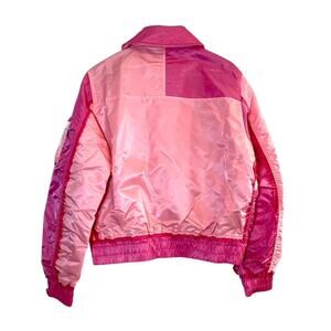 Alpha Industries, bomber jacket, pink bomber, CWU 45/P, colorblock, patchwork jacket, women’s medium, streetwear jacket, flight jacket, Y2K aesthetic, trendy outerwear, quilted nylon jacket